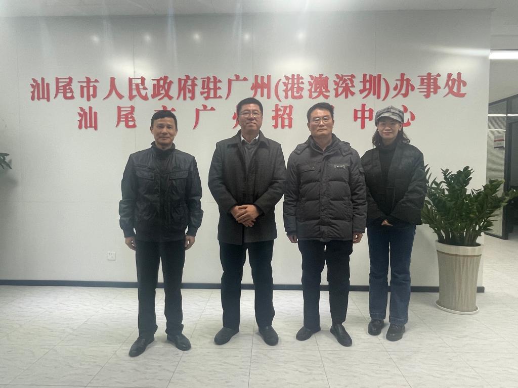 为深入做好校友联系服务工作,加强校地校企合作,推动科研、人才培养等方面的产学研合作,不断提高学校人才培养能力和质量,12月22日,校友办(基金办)和我院主要负责人赴汕尾市人民政府驻广州(港澳深圳)办事处、汕尾市广州招商中心走访,受到办事处主任陈俊雷校友的热烈欢迎。