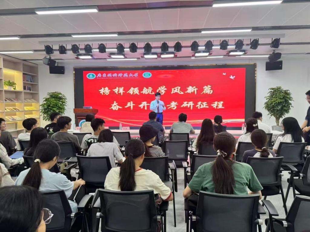 在会议现场,林欣副院长紧扣考研学子的实际需求,以普及考研常识、指导院校科学选择为目标,对当下考研形势展开深度剖析。讲解过程中,他聚焦院校选择这一关键环节,结合历年考研数据与招生政策,精心筛选并推荐多所性价比突出的院校,同时前瞻性地探讨了各专业未来的就业方向与发展前景。林欣副院长生动详实的分享,不仅让我院学生系统掌握了院校选择的实用技巧,更帮助他们在职业规划上拨开迷雾,对未来就业方向形成更为清晰、精准的认知,为后续的考研之路与职业发展提供了切实有效的指引。