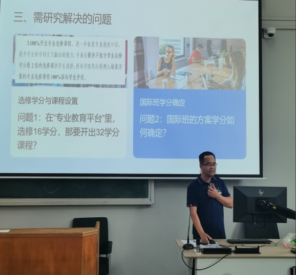 随后,各专业负责人依次汇报修订过程、修订思路与具体方案。会计学专业周建庆老师提出引入“AI+财务”方向,计划增设《数智审计》等智能化课程;财务会计教育专业唐霏老师强调发挥实习基地作用,强化实训与实践教学环节;财务管理专业罗映红老师基于OBE教育理念和行业调研,提出推进产教融合与AI赋能课程建设;金融学专业刘茂平老师建议整合跨学科资源,重构课程模块,加强理论与实务对接;国际经济与贸易专业钟晓君老师结合行业新趋势,提出增设《新媒体运营》《直播营销》等应用型课程。