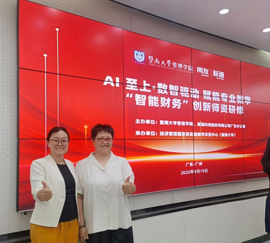 为贯彻党的二十大关于“推进教育数字化”的战略部署,积极探索新时代财经人才培养的创新路径,2025年9月19日上午,我院会计系和财务管理系骨干教师参加了暨南大学管理学院、新道科技股份有限公司联合主办的《AI 至上·数智驱动 赋能专业教学——“智能财务”创新师资研修》活动。