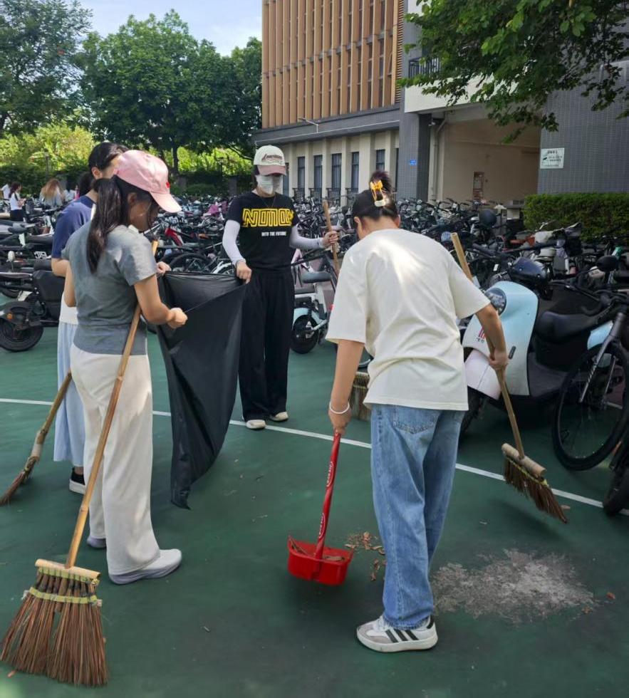 本次实践活动学院主要负责第三教学楼周边公共区域的清洁工作。同学们分工协作、互相配合,对绿化带、楼道角落、停车场等卫生死角进行了彻底清理。参与活动的入党积极分子表示:“作为一名入党积极分子,能够通过实际行动为校园环境出一份力,我感到非常光荣。这次活动也让我更加意识到,维护校园清洁不仅是一份责任,更是一种担当。”