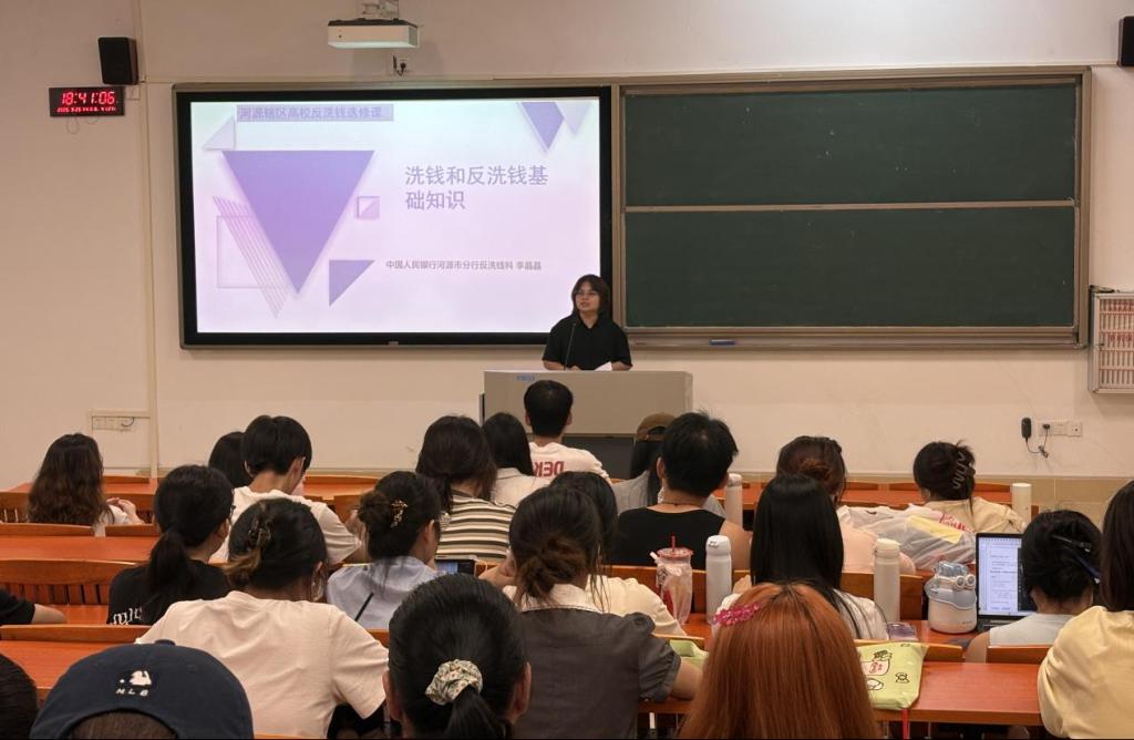 2025年9月25日星期四,yl23455永利官网校企合作重点课程《反洗钱理论与实务》于第9节正式开讲。首次课程以“洗钱和反洗钱基础知识”为主题,由中国人民银行河源市分行反洗钱科业务骨干李晶晶主讲。课上学生专注投入,学习气氛浓烈,标志着该门校行共建课程进入实质教学阶段。