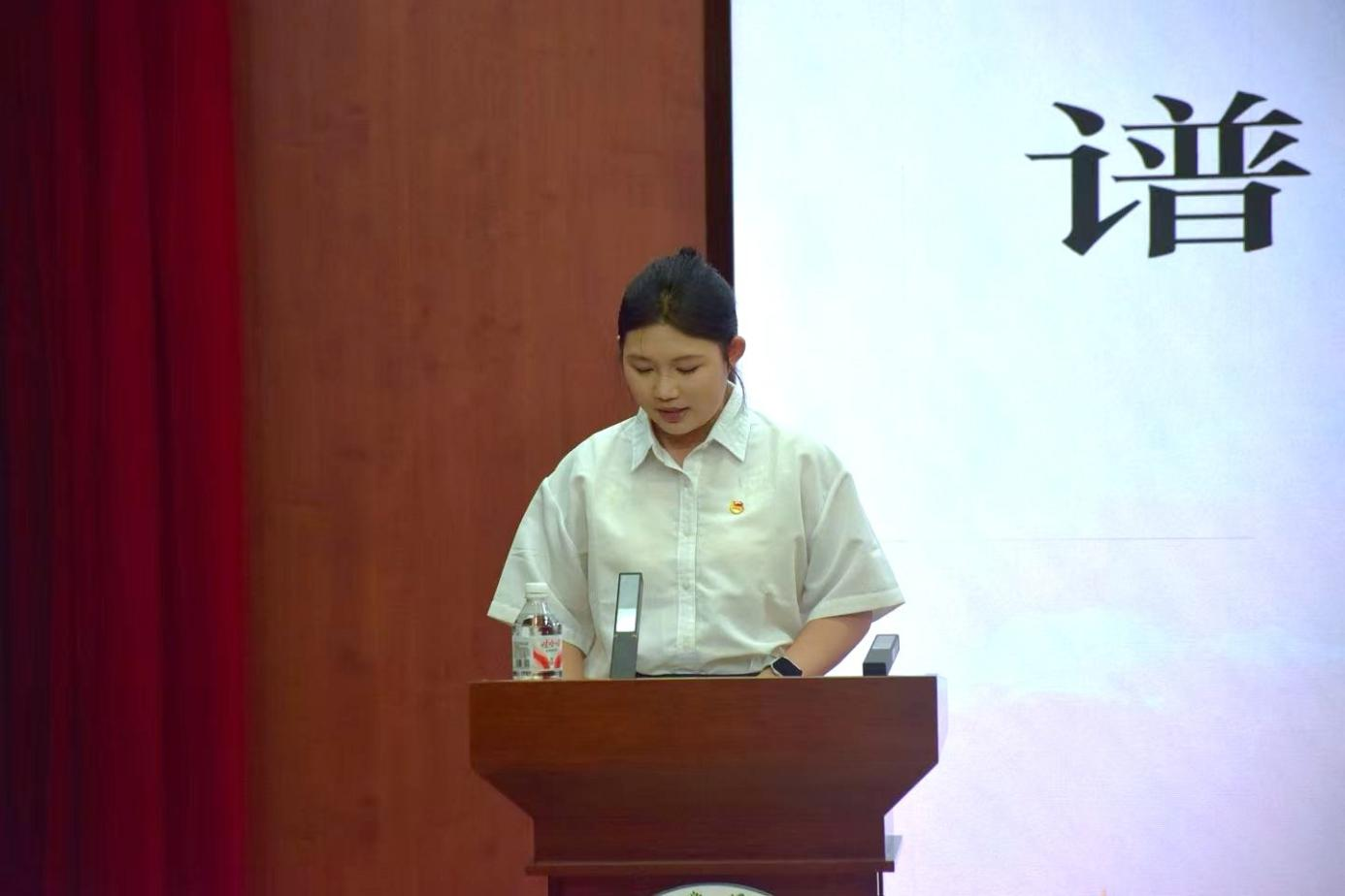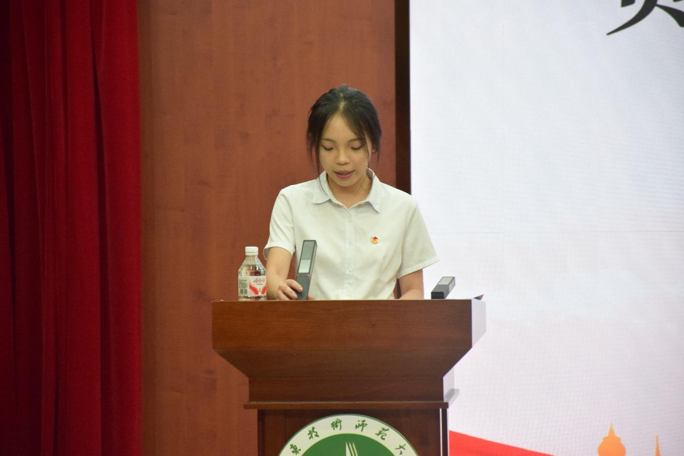 我院第五届团委学生兼职副书记成员谢静向大会作工作报告