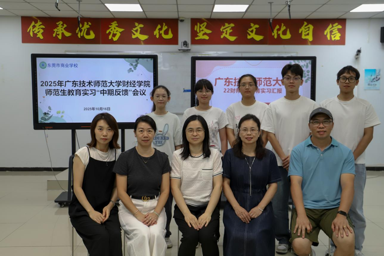 2025年10月16日下午,财务会计教育专业负责人唐霏副教授和罗映红教授前往东莞市商业学校开展教育实习中期检查。东莞市商业学校智能财税部部长陈淑贞老师、课题组组长吴桐老师、指导教师罗娇和五位实习生一起,共同出席了实习检查座谈会。