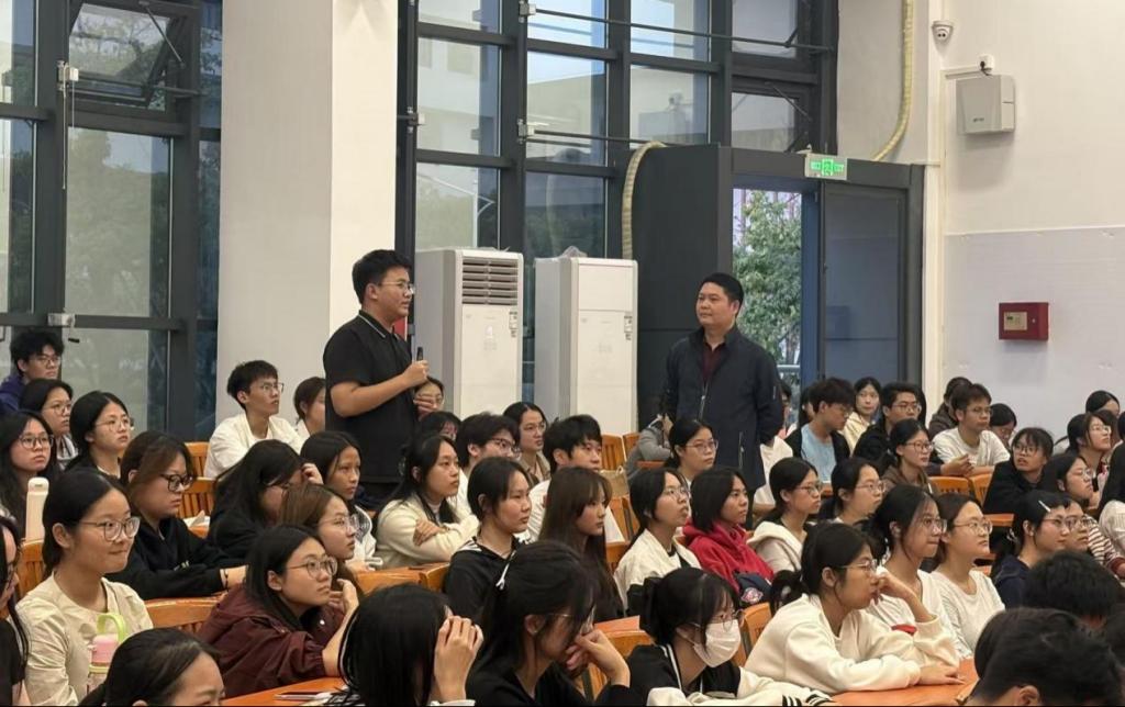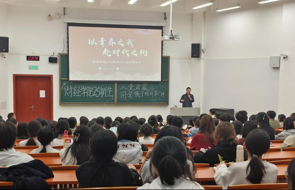 为扎实推进新生思想政治教育,加深同学们对中国共产党的了解,端正入党动机,筑牢思想根基,培育忠诚、干净、担当的学生骨干,2025年10月24日,我院在河源校区博学大讲堂102面向2025级本科新生展开了新生入党启蒙暨团学预干培训第一讲。学院党委副书记黄伟文结合刚刚胜利闭幕的中国共产党第二十届中央委员会第四次全体会议精神,以《以青春之我,赴时代之约》为主题讲授专题党课,要求同学们积极响应四中全会号召,更加紧密地团结在以习近平同志为核心的党中央周围,为全面推进强国建设、民族复兴伟业新局面争做新时代有为青年。