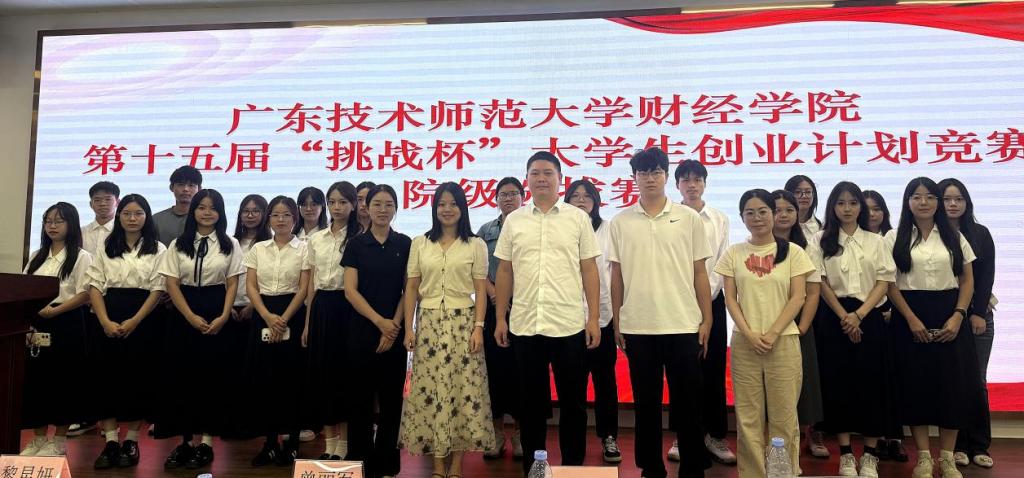 为深入学习贯彻党的二十大精神,落实省委“百千万工程”重大战略部署,进一步服务学校“申博冲百”和学科建设目标,我院于10月10日在白云校区图书馆719达之学堂举办2025年第十五届“挑战杯”大学生创业计划竞赛院级选拔赛。我院党委副书记黄伟文、财税系主任曾丽军、团委书记陈逸珺、辅导员凌雪雯、黎星妍共同担任本次赛事评委。