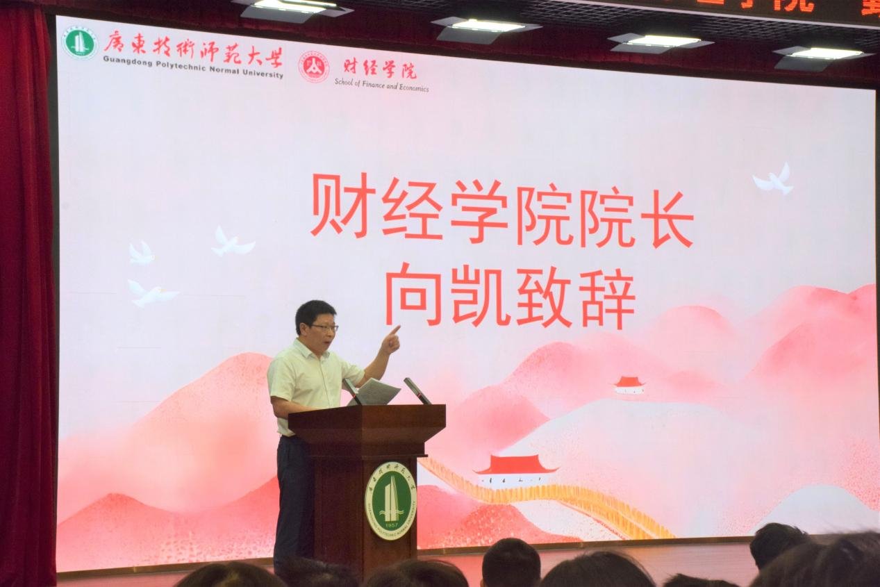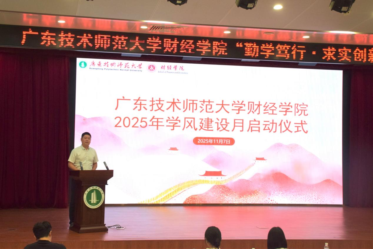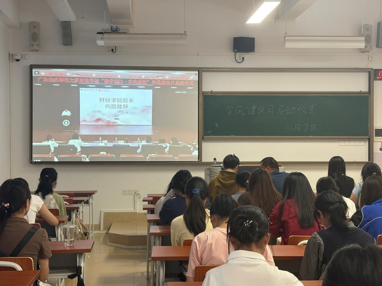 为进一步强化学风建设、涵养优良学风,营造勤学善思、笃行创新的校园氛围,我院于11月7日下午在白云校区图书馆113报告厅隆重举办“勤学笃行,求是创新”学风建设月启动仪式。学院院长向凯、学院党委副书记黄伟文、学院副院长刘国庆、数字经济系主任曾丽军、财务管理系主任王品、商务系副主任朱邦耀、辅导员代表、团委学生会代表及学生代表参加活动,河源校区学生通过线上方式同步参会,启动仪式由黄伟文主持。