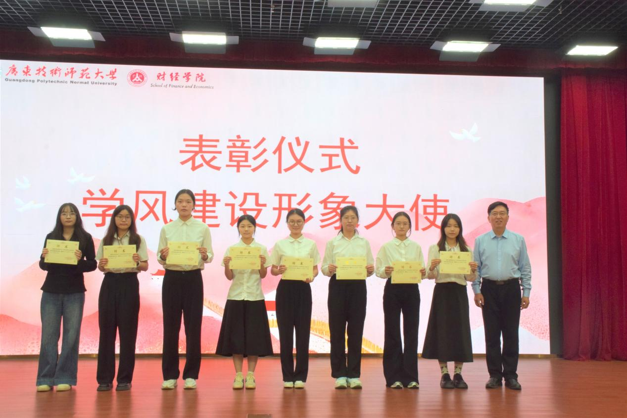会议最后,向凯院长、刘国庆副院长分别为“国家奖学金”和“优秀三好学生”代表颁发“学风建设形象大使”荣誉证书。此举旨在激励广大财经学子见贤思齐、奋发向上,在榜样引领中汇聚奋进力量。