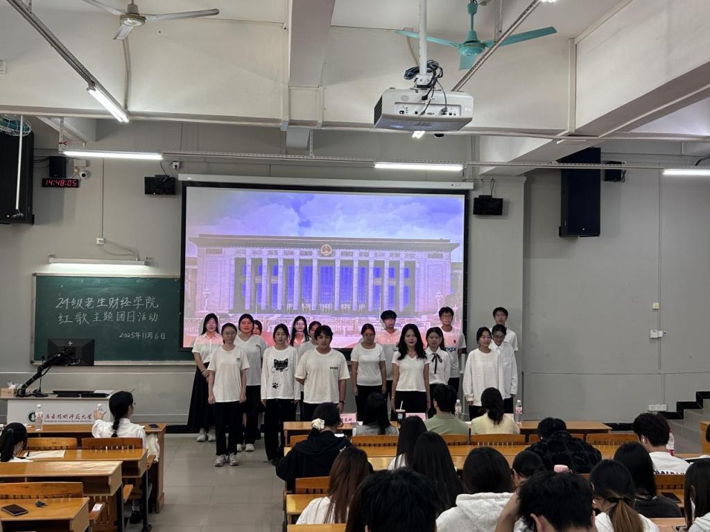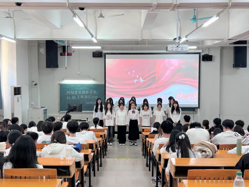 为传承红色精神、厚植爱国情怀,我院于2025年11月6日下午在白云校区三教107举办“八秩风雨忆峥嵘,红歌一曲诉初心”主题团日活动。本次活动由我院团委组织部主办,邀请了辅导员、学院团委书记陈逸珺老师,辅导员、学院团委副书记李琢老师以及辅导员黎星妍老师担任评委。