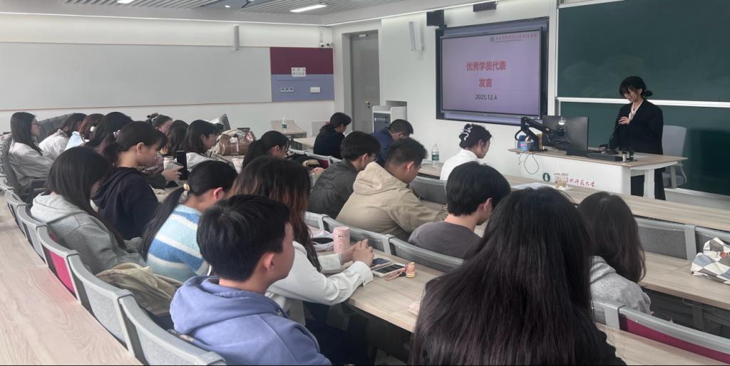 优秀学员代表徐筱淳同学上台发言。她以真挚的情感回顾了在数智化财会专项人才班学习的心路历程,从最初接触数智化概念的懵懂,到通过系统学习和企业调研后的豁然开朗。她特别感谢了学院搭建的优质平台和老师们毫无保留的指导,让她和同学们不仅学会了如何使用先进的财务分析工具,更培养了用数智化思维解决实际问题的能力。她表示,这段经历是大学生涯中浓墨重彩的一笔,全体学员必将带着这份收获与自信,在未来道路上砥砺前行。