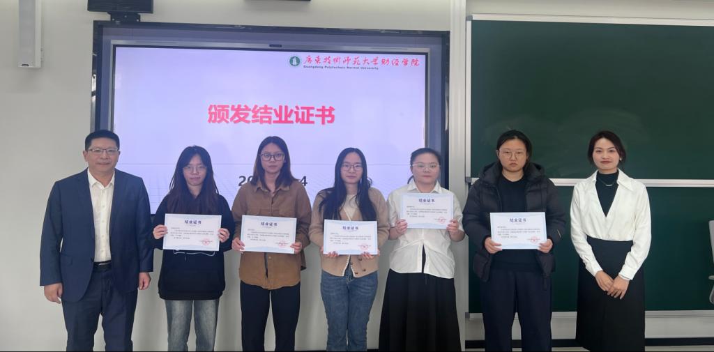 仪式的最后环节是结业证书颁发。在庄重的乐曲声中,向凯院长与麦黛洁老师共同为数智化财会专项人才班的全体学员逐一颁发了结业证书。学员们有序上台,双手接过这份沉甸甸的认可,并与院长、老师合影留念。每一张证书都承载着数月来的辛勤汗水与智慧结晶,也为这段学习之旅画上了圆满的句号。